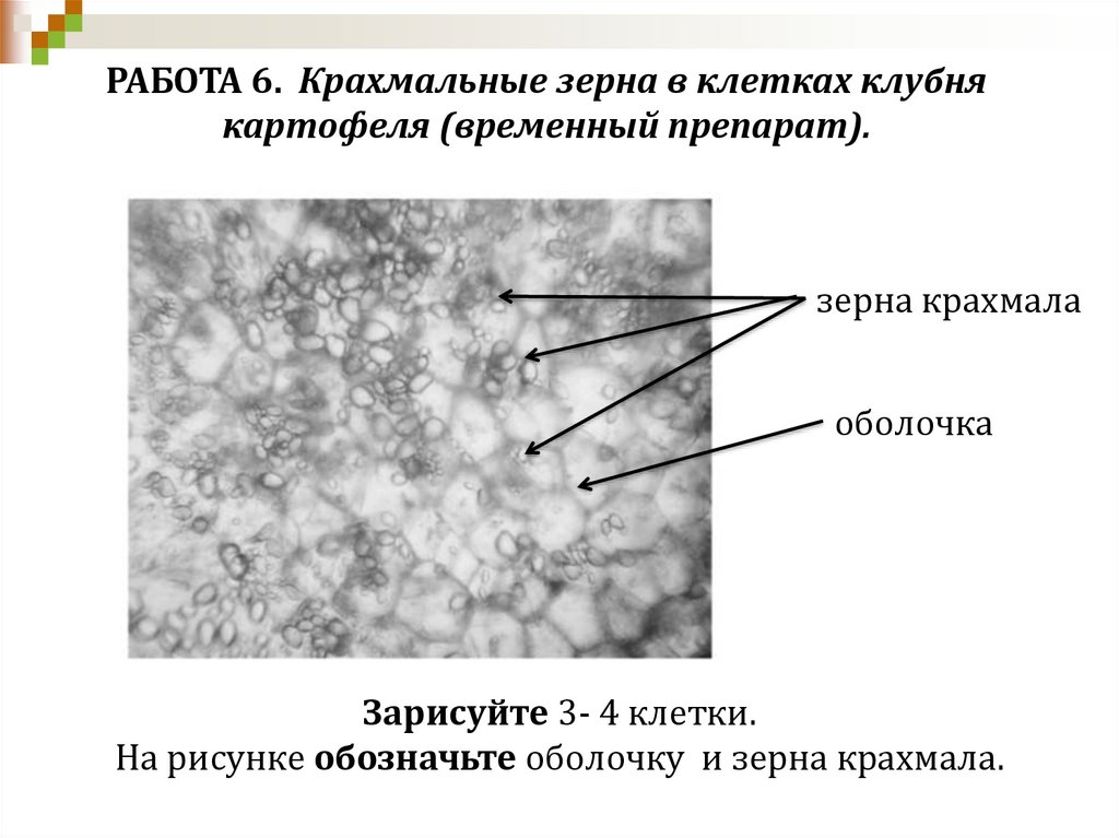 РАБОТА 6. Крахмальные зерна в клетках клубнякартофеля (временный препарат).