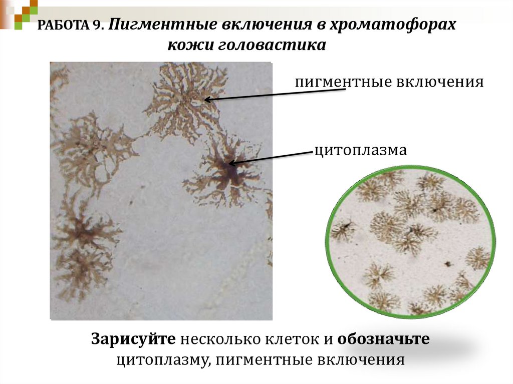 РАБОТА 9. Пигментные включения в хроматофорахкожи головастика