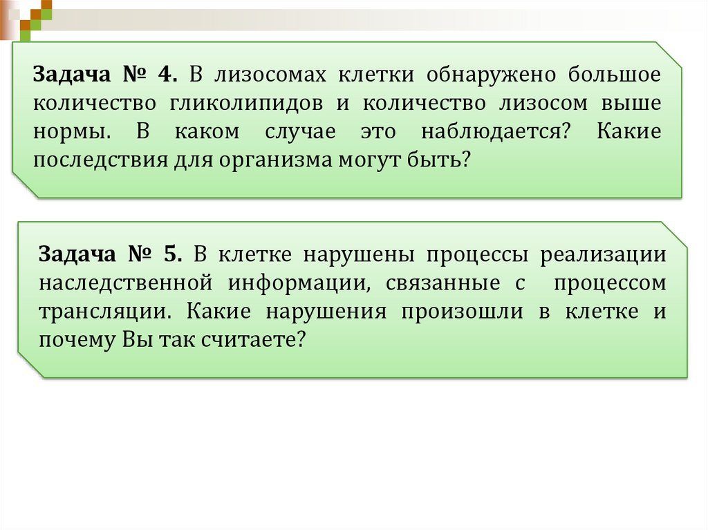 Задача № 4. В лизосомах клетки обнаружено большоеколичество гликолипидов и количество лизосом выше