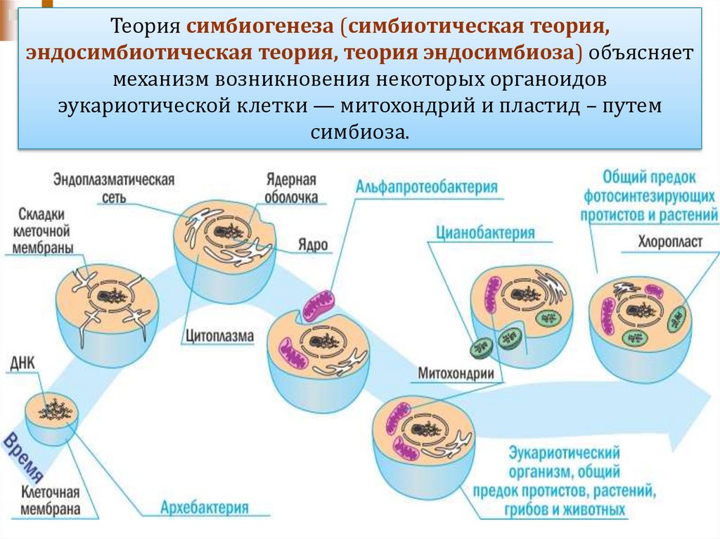 Теория симбиогенеза (симбиотическая теория,эндосимбиотическая теория, теория эндосимбиоза) объясняет
