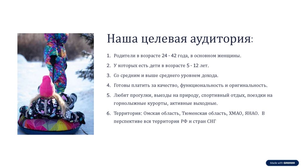 Наша целевая аудитория:1. Родители в возрасте 24 - 42 года, в основном женщины.