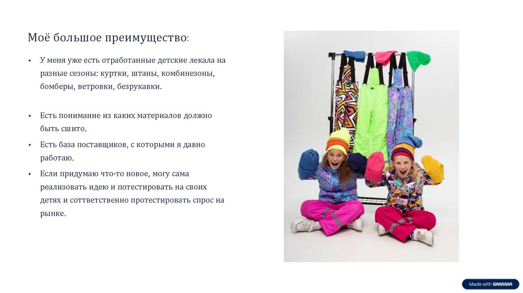 Моё большое преимущество:• У меня уже есть отработанные детские лекала на