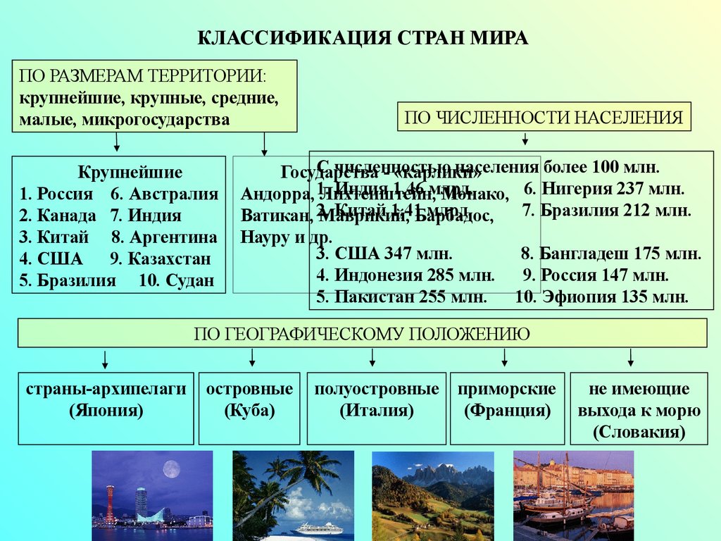 КЛАССИФИКАЦИЯ СТРАН МИРАПО РАЗМЕРАМ ТЕРРИТОРИИ:
