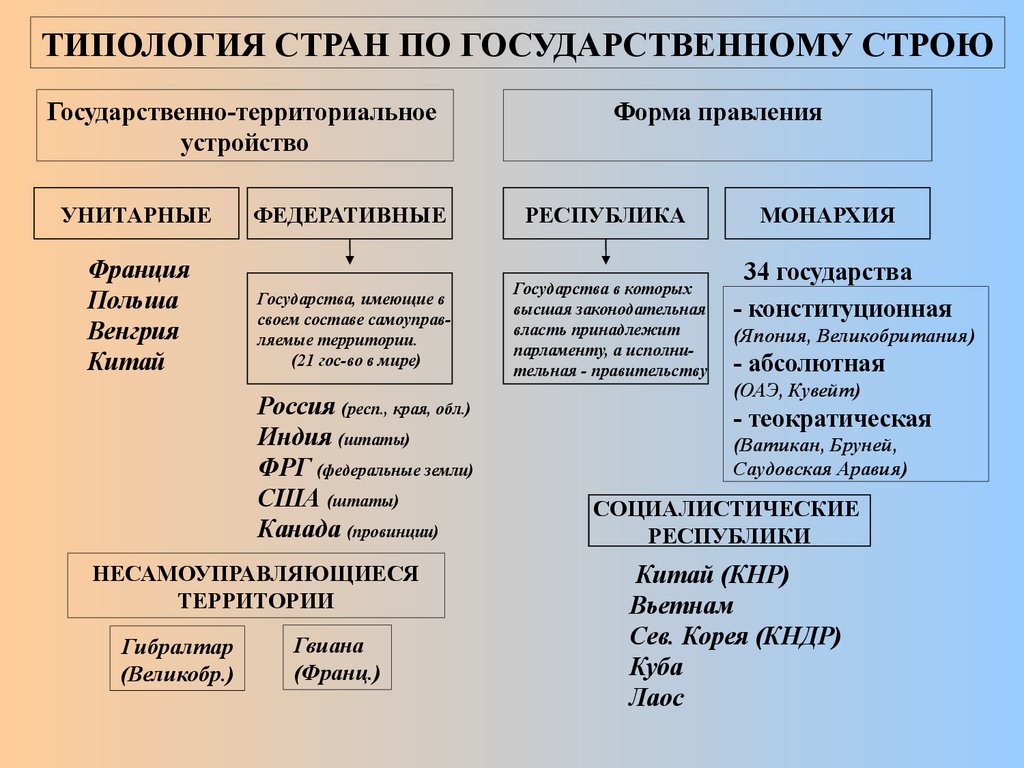 ТИПОЛОГИЯ СТРАН ПО ГОСУДАРСТВЕННОМУ СТРОЮГосударственно-территориальное