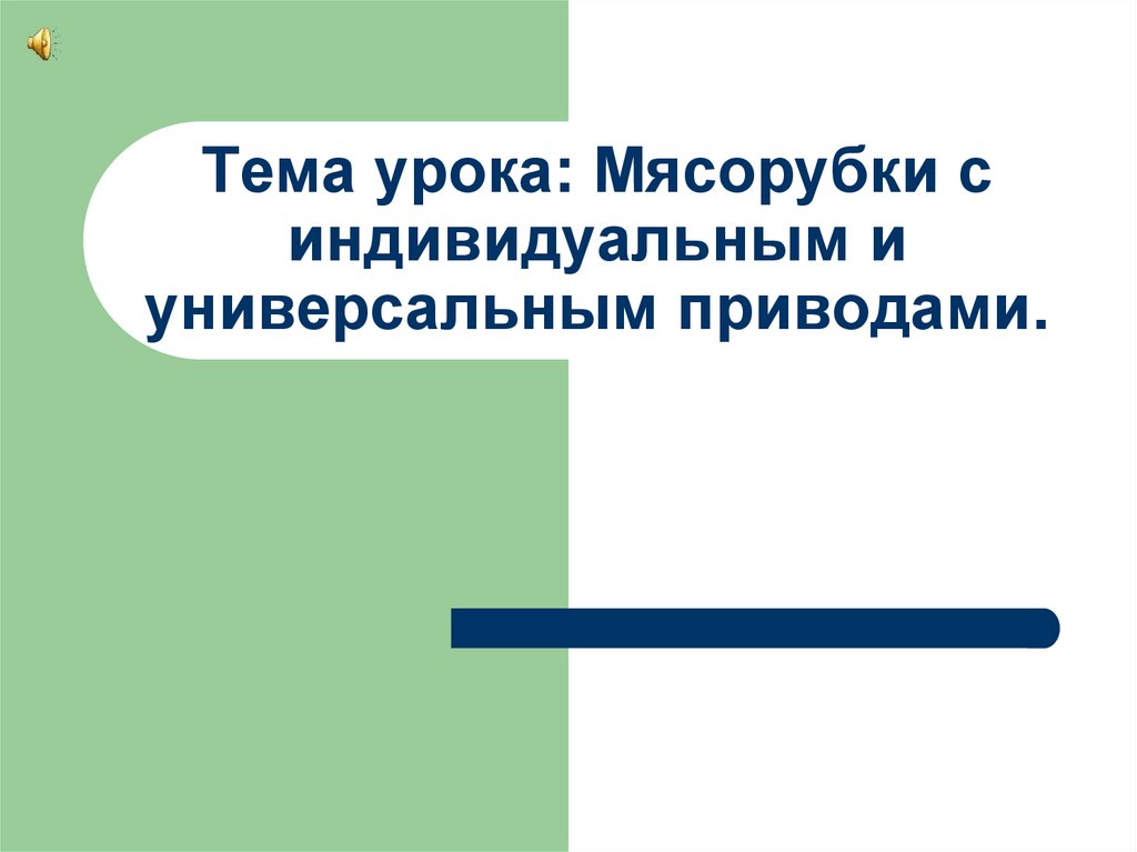 1. Тема урока: Мясорубки с индивидуальным и универсальным приводами.
