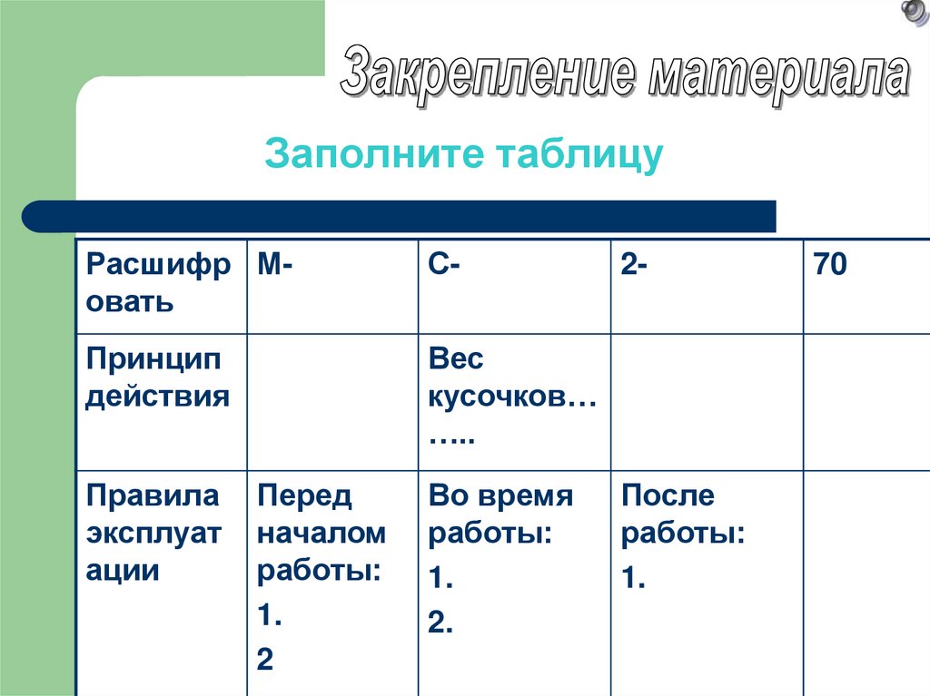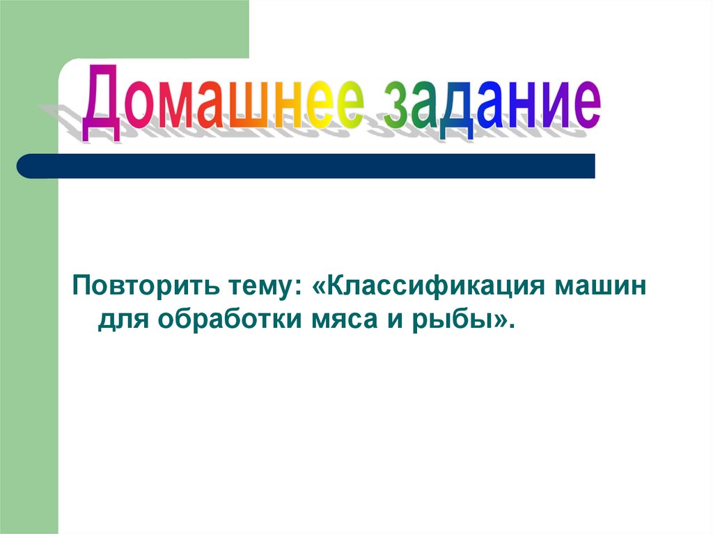 Повторить тему: «Классификация машиндля обработки мяса и рыбы».