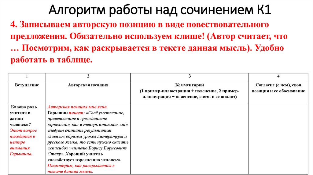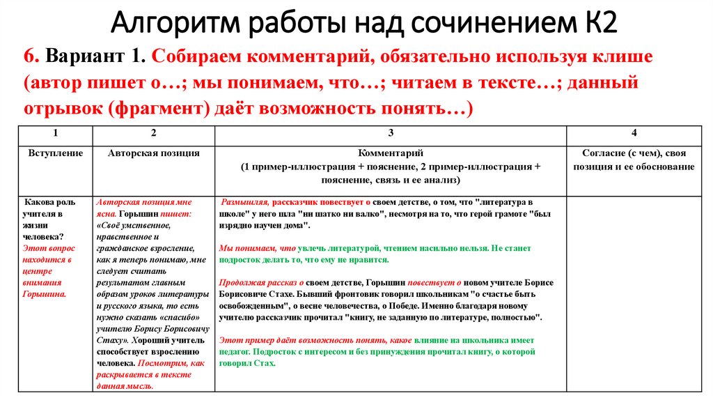 Задания 27 Алгоритм работы. Алгоритм работы над сочинением