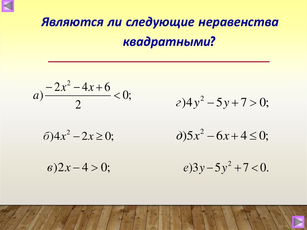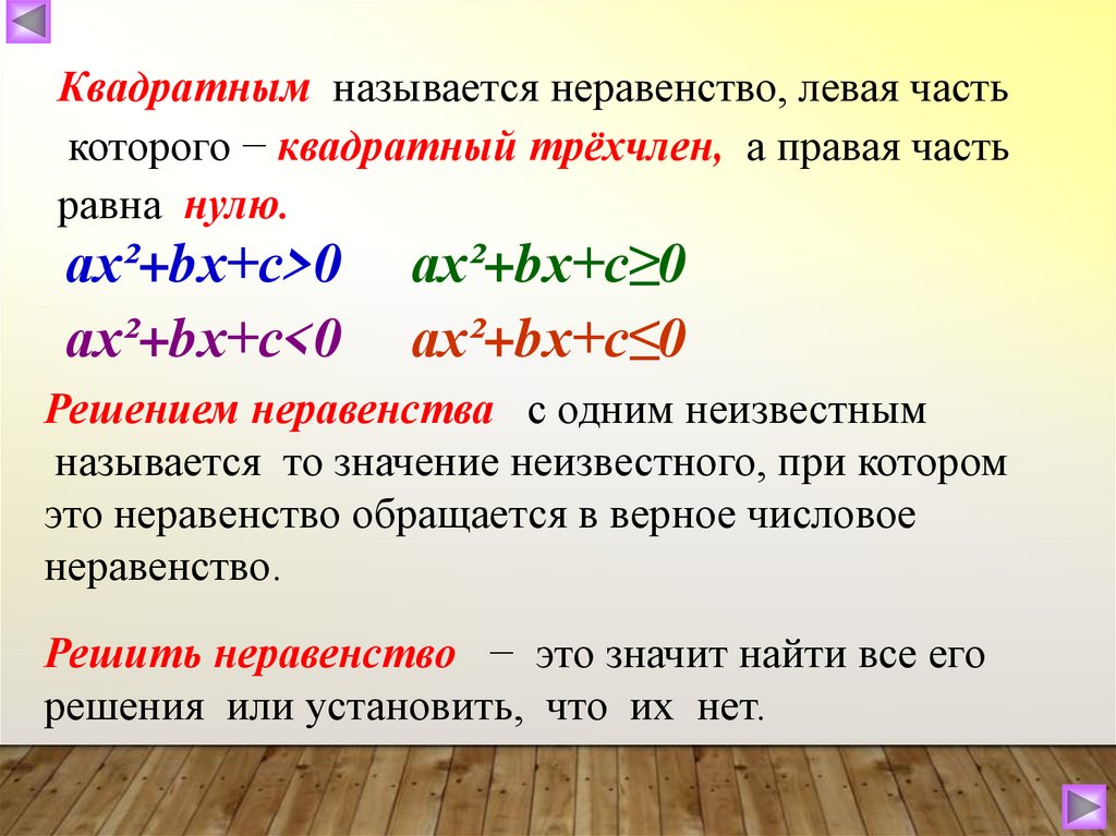 квадратных неравенств)