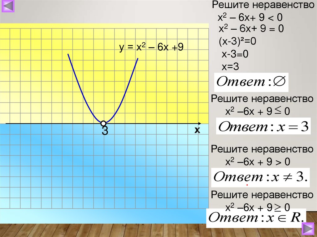 х2 –6х + 9 0