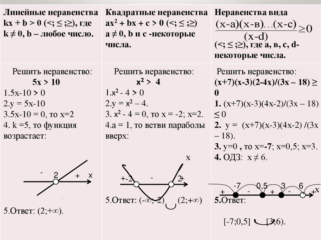 Решение линейных, квадратных и дробно-рациональных неравенств