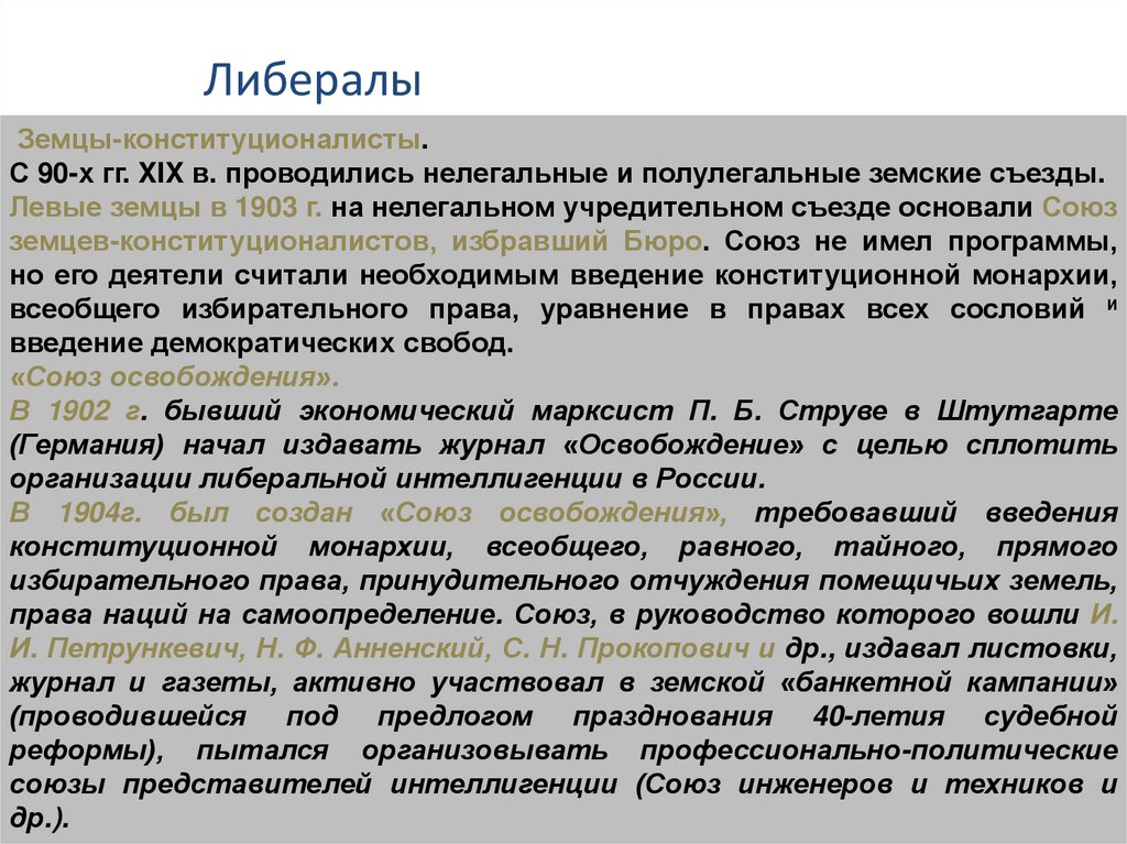 • С началом царствования Николая II среди либераловожили надежды на реформы. Девять земств