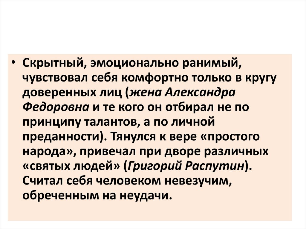 • мягкий, впечатлительный, в молодостинаходился под влиянием отца (Александра III),