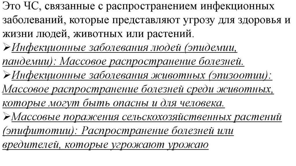 Это ЧС, связанные с распространением инфекционныхзаболеваний, которые представляют угрозу для здоровья и