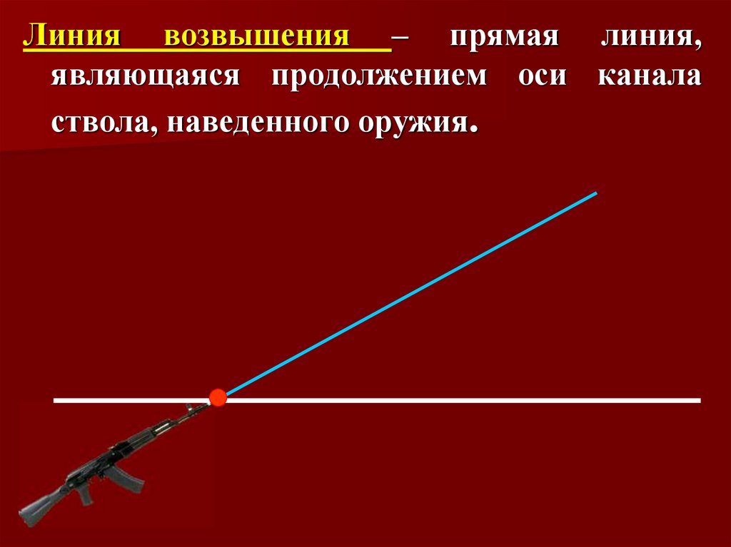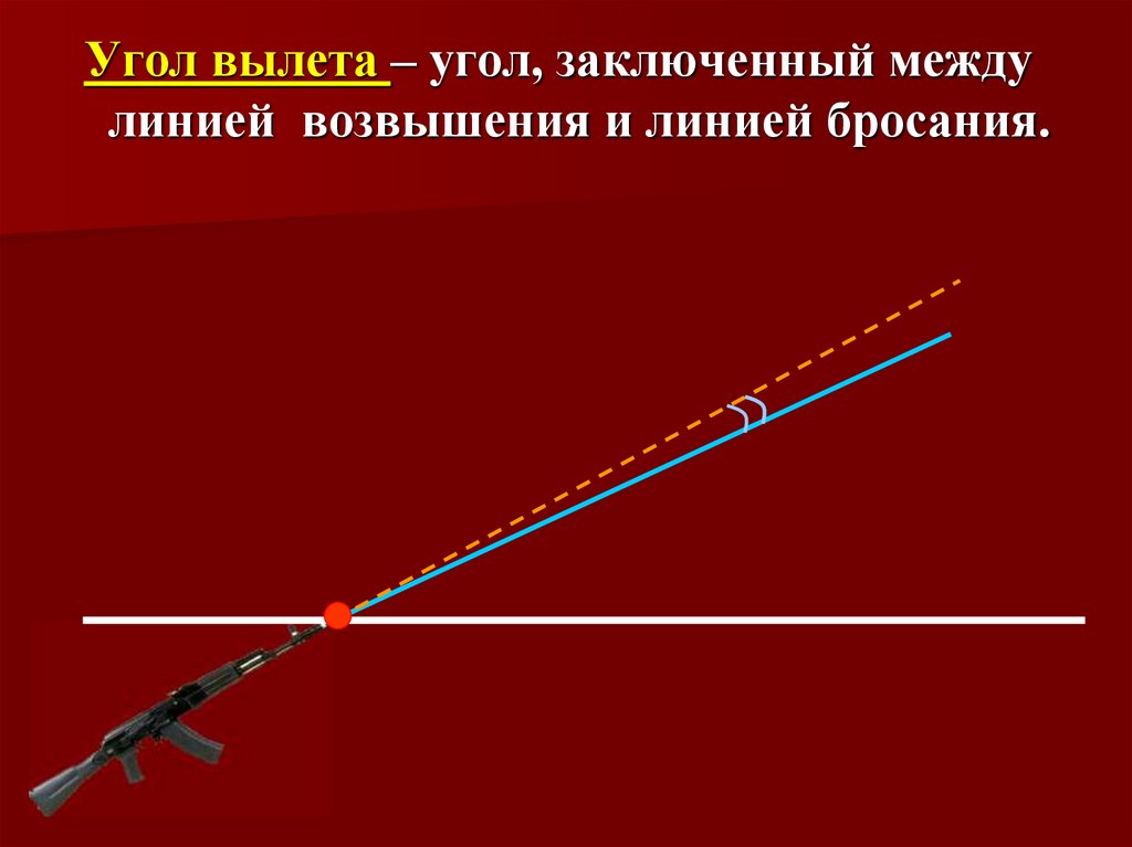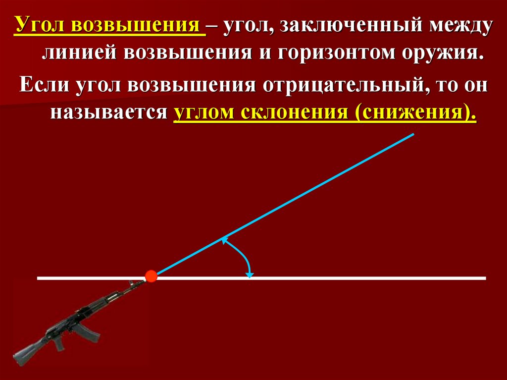 Угол возвышения – угол, заключенный междулинией возвышения и горизонтом оружия.