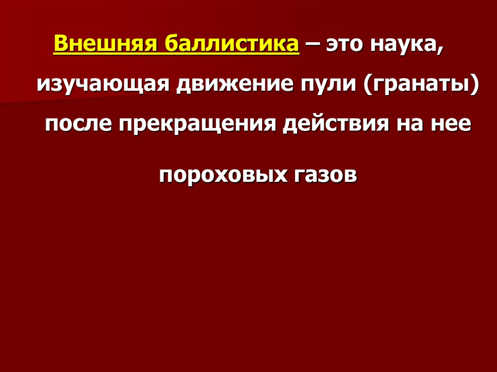 Внешняя баллистика – это наука,изучающая движение пули (гранаты)