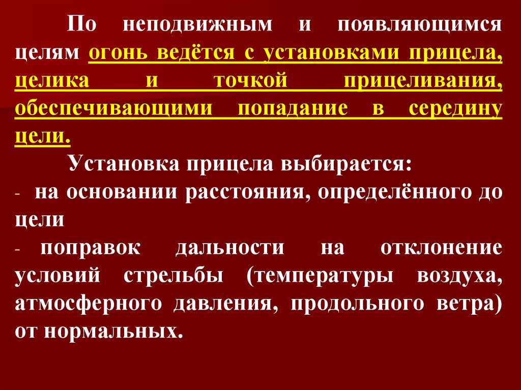 По неподвижным и появляющимсяцелям огонь ведётся с установками прицела,