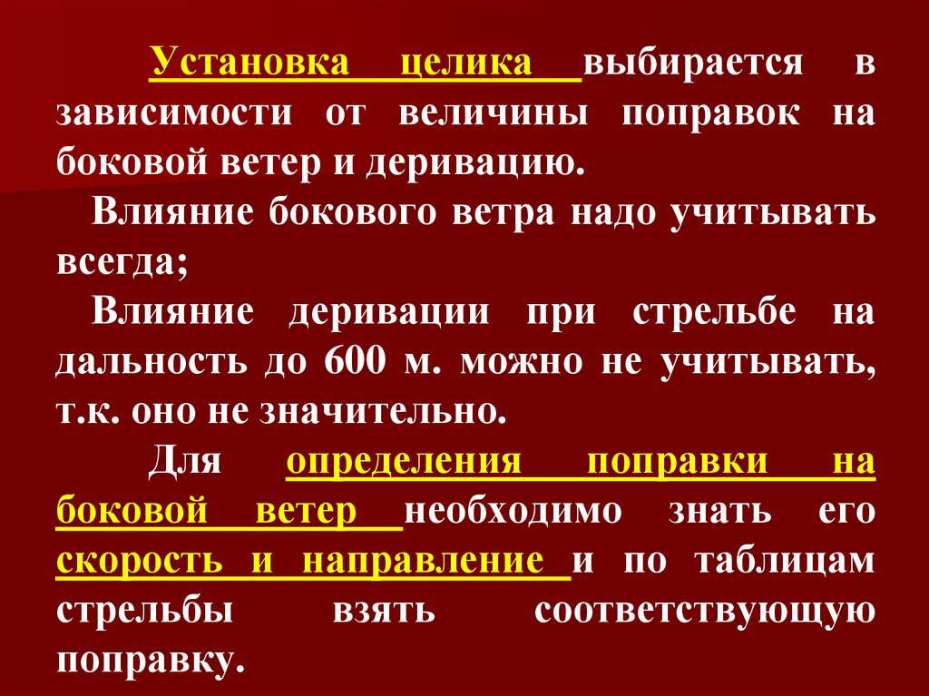 При стрельбе по движущейся целиустановки прицела, целика и точку