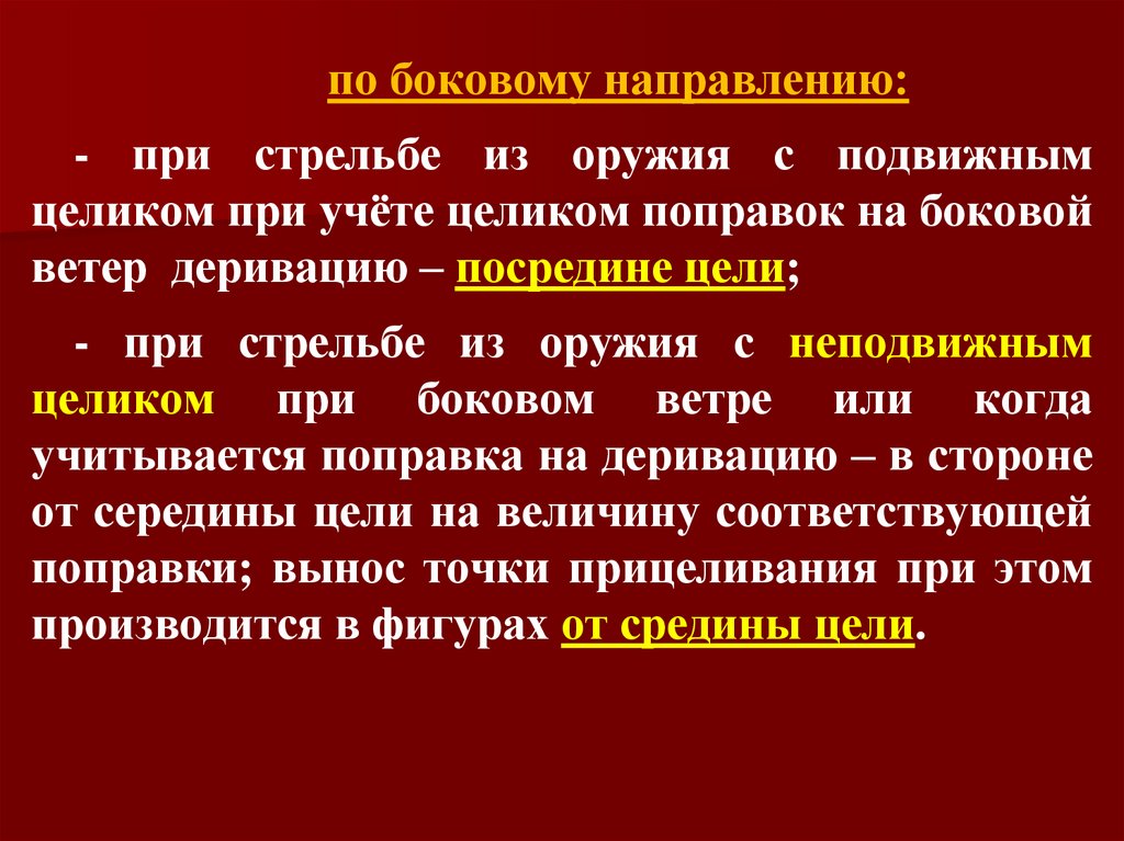 по боковому направлению:- при стрельбе из оружия с подвижным
