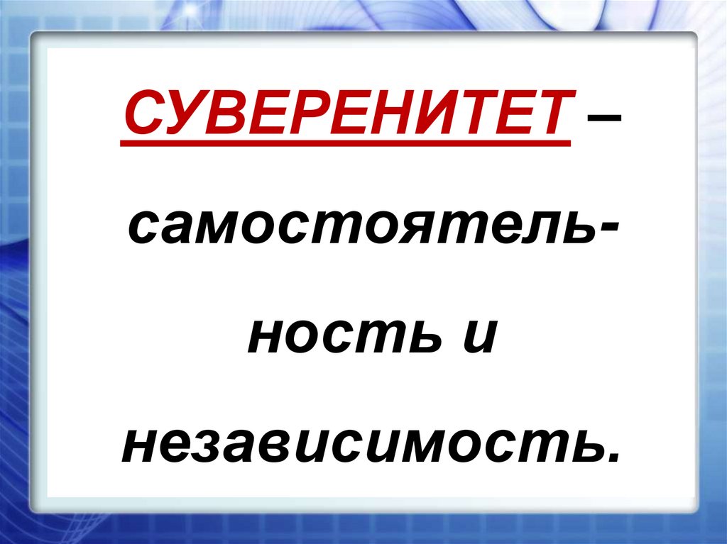 СУВЕРЕНИТЕТ –самостоятельность и