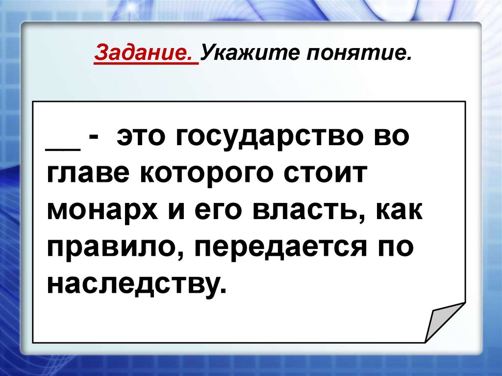 Задание. Укажите понятие._______________________
