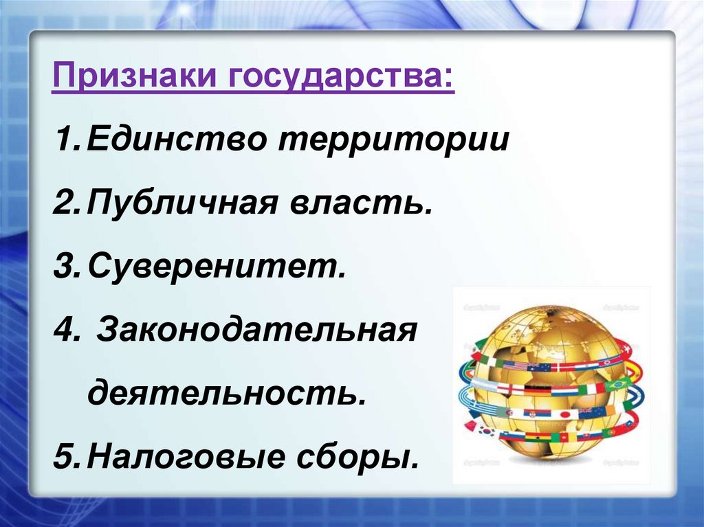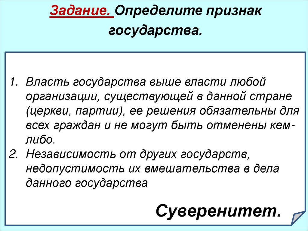 Задание. Определите признакгосударства.