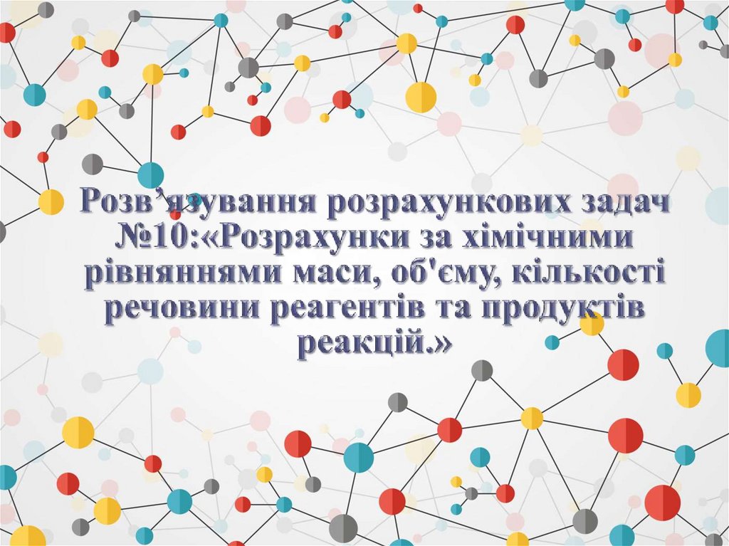 Розрахунки за хімічними рівняннями маси, об'єму, кількості речовини реагентів та продуктів реакцій