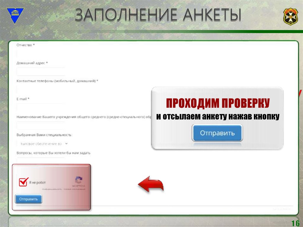 ПРОХОДИМ ПРОВЕРКУи отсылаем анкету нажав кнопку