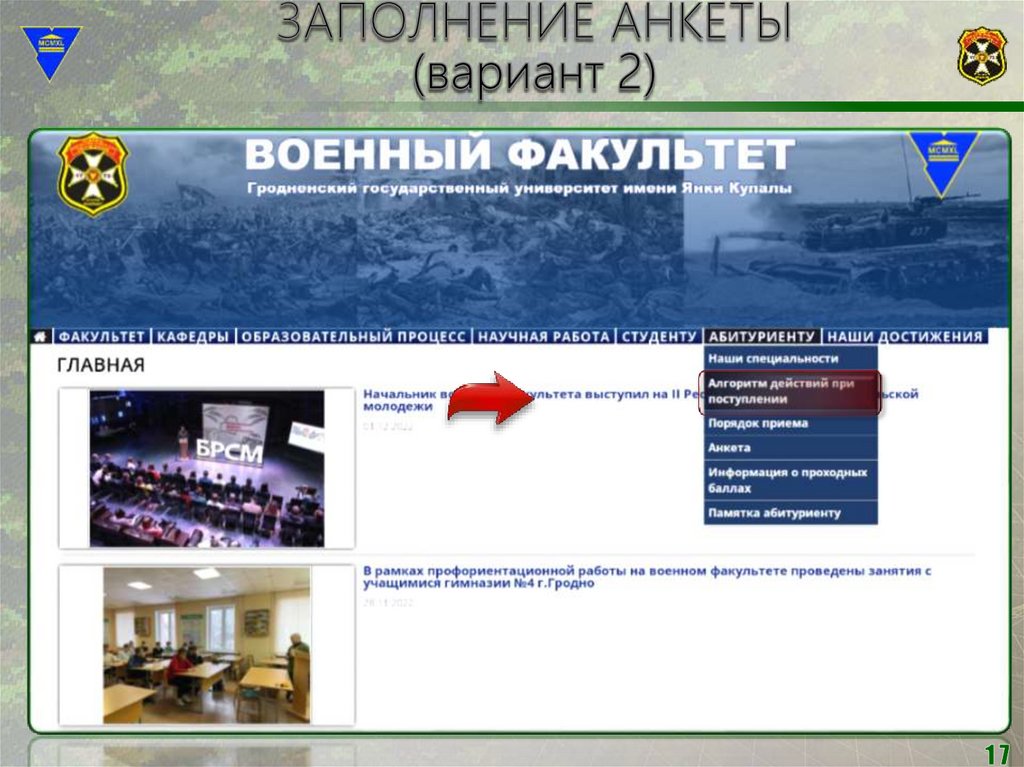 Сайт военного факультета: mil.grsu.by