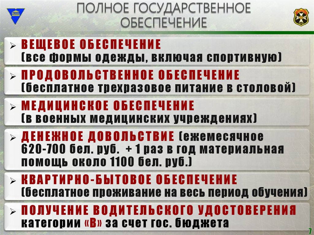 (бесплатное проживание на весь период обучения)
