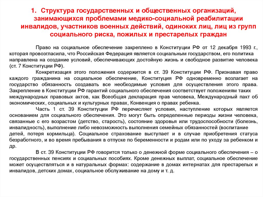 1. Структура государственных и общественных организаций,занимающихся проблемами медико-социальной реабилитации