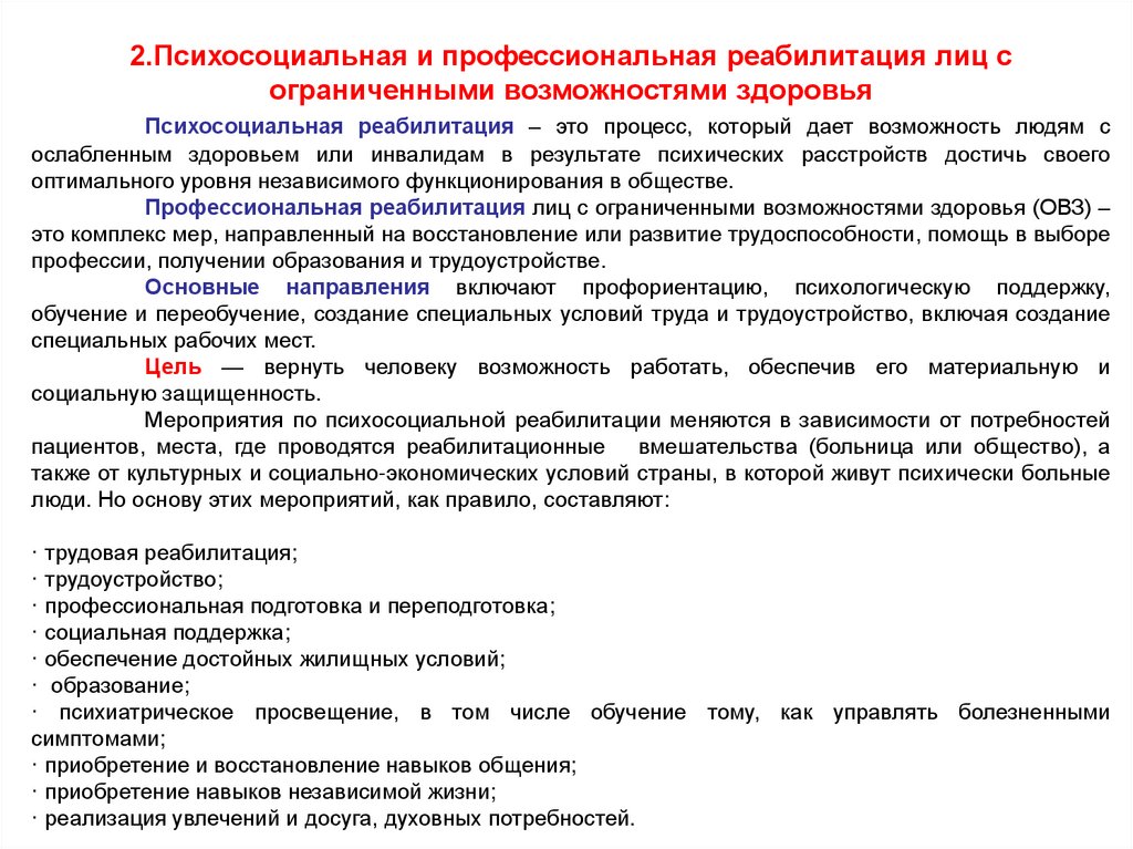 2.Психосоциальная и профессиональная реабилитация лиц сограниченными возможностями здоровья