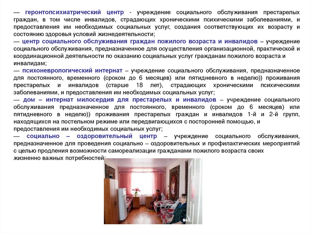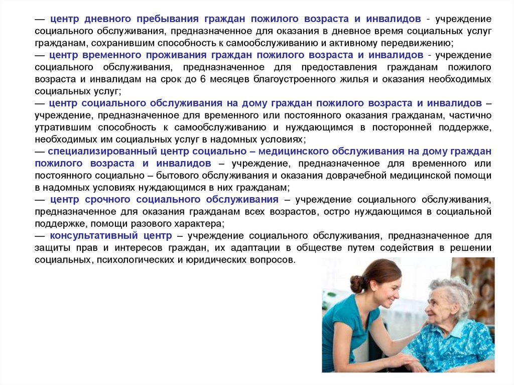 инвалидов, детских домах, социальное обслуживание на дому и т. д.