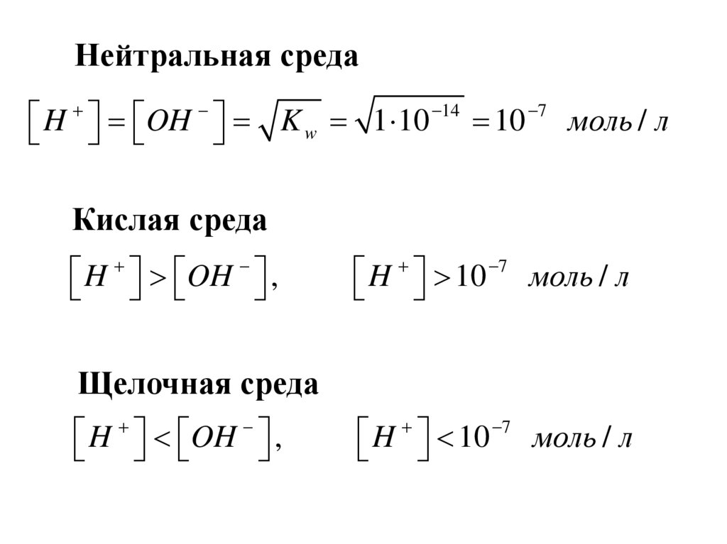 Нейтральная средаH OH K w 1 10 14 10 7 моль / л