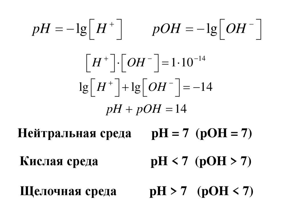 pH lg HpOH lg OH