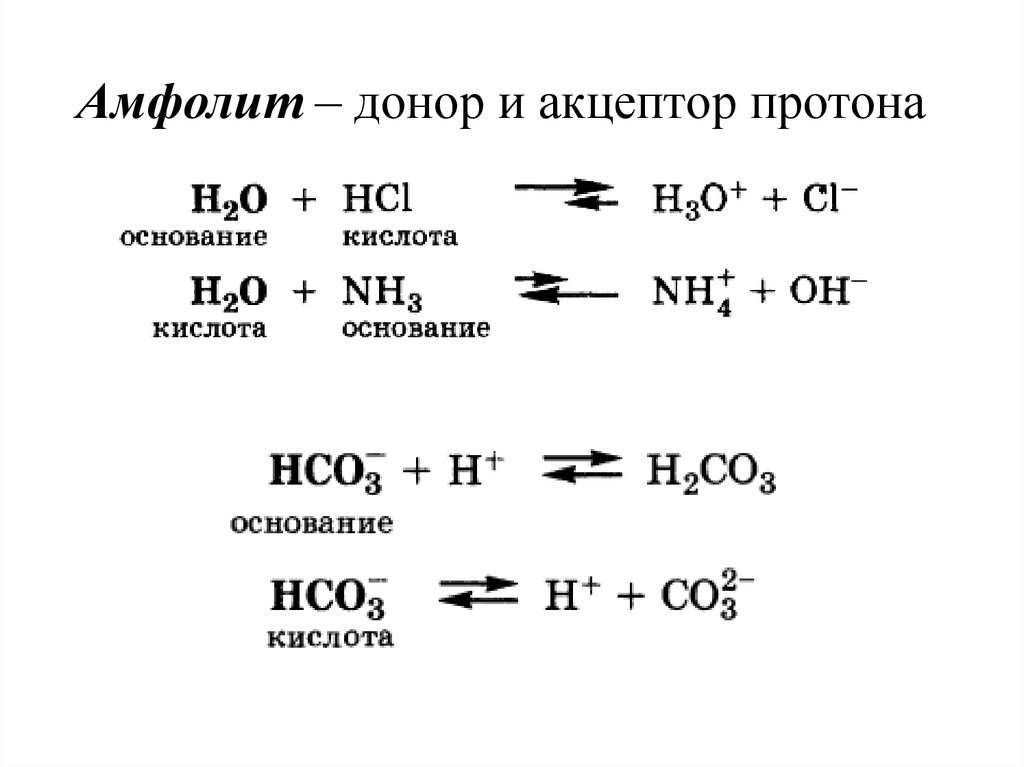 Амфолит – донор и акцептор протона21.