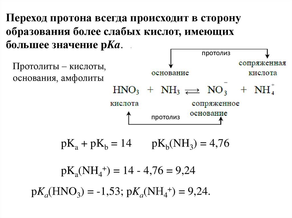 рKа(НNO3) = -1,53; рKа(NН4+) = 9,24.