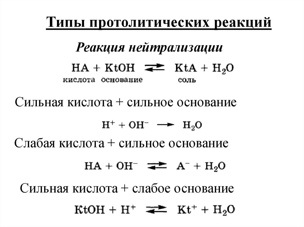 Типы протолитических реакцийРеакция нейтрализации