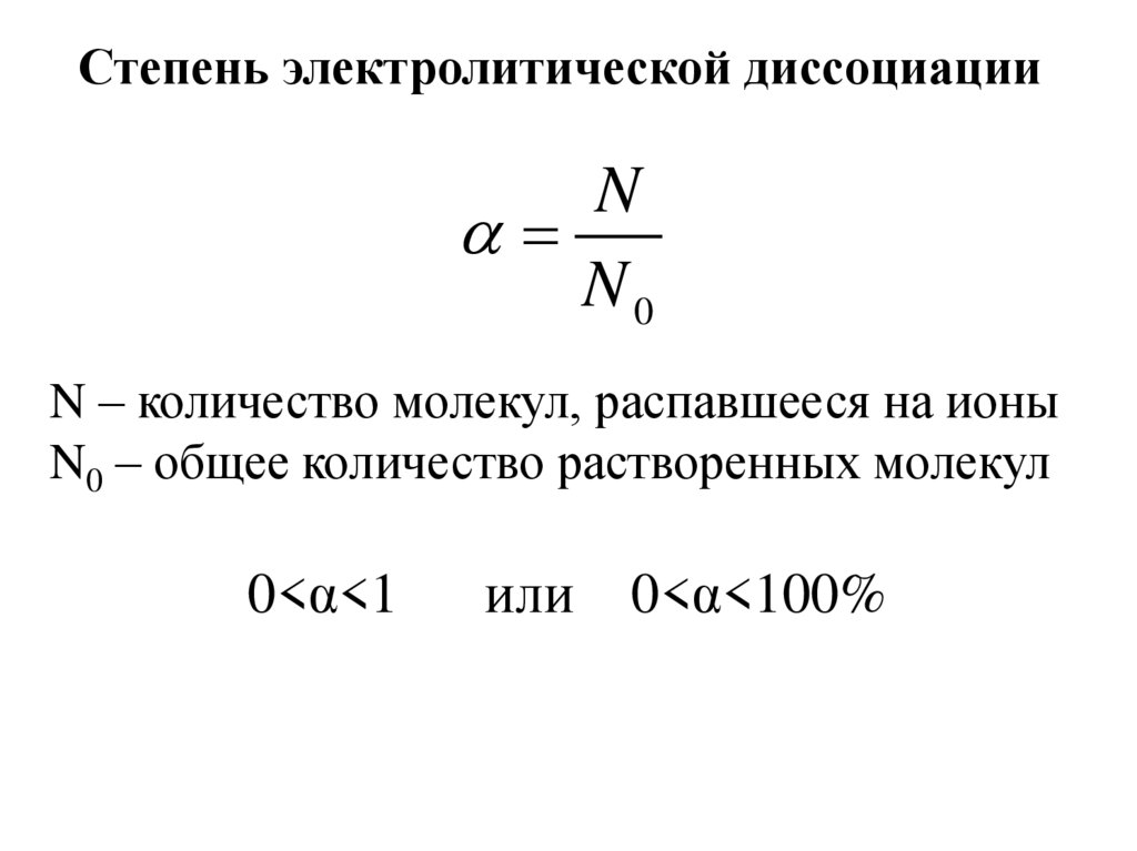 Степень электролитической диссоциацииN