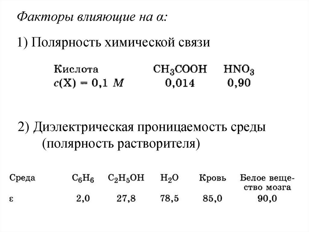 Факторы влияющие на α:1) Полярность химической связи