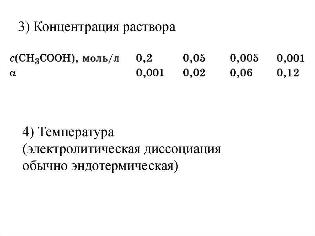 3) Концентрация раствора4) Температура