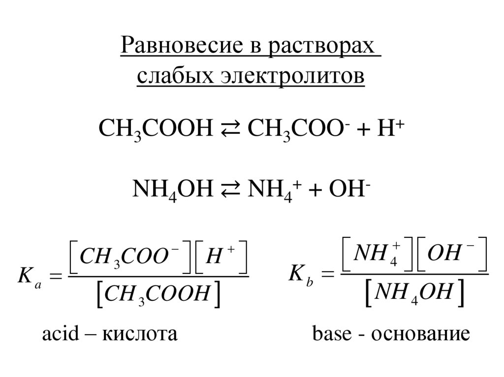 Равновесие в растворахслабых электролитов