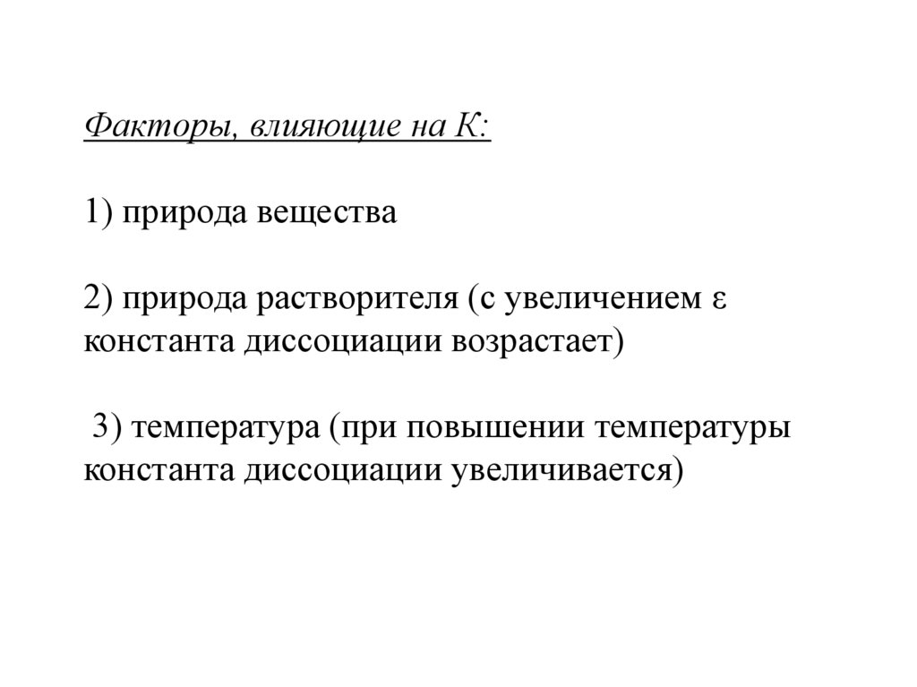 Факторы, влияющие на К:1) природа вещества