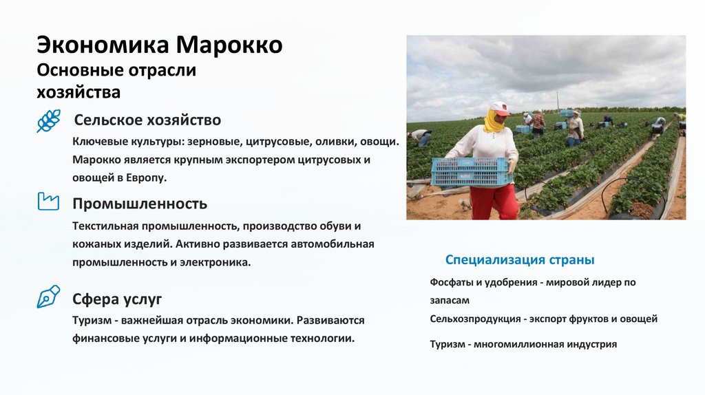 Ключевые культуры: зерновые, цитрусовые, оливки, овощи.