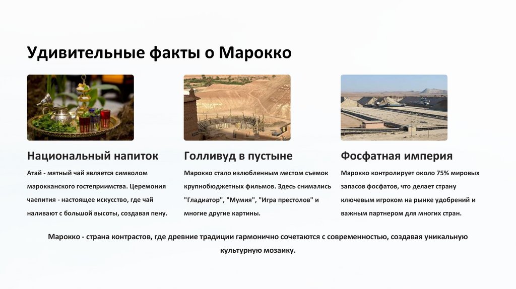 Марокко - страна контрастов, где древние традиции гармонично сочетаются с современностью, создавая уникальную