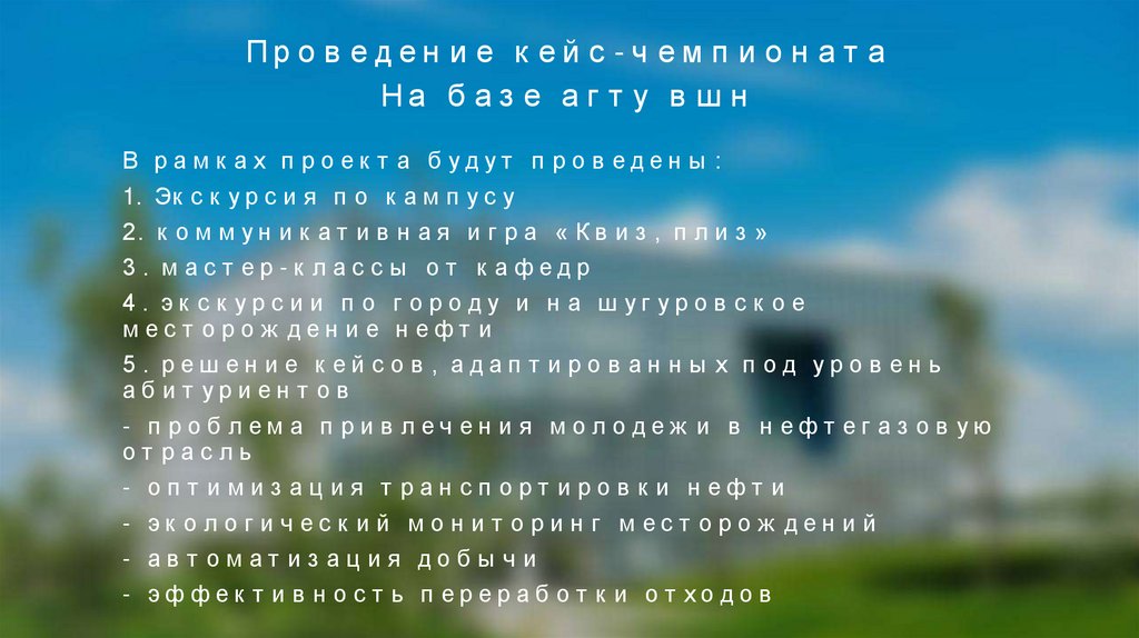 Пр о в е д е н и е к е й с - ч е м п и о н а т аНа б а з е а г т у в ш н