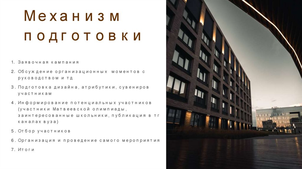 6 . Ор г а н и з а ц и я и п р о в е д е н и е с а м о г о м е р о п р и я т и я