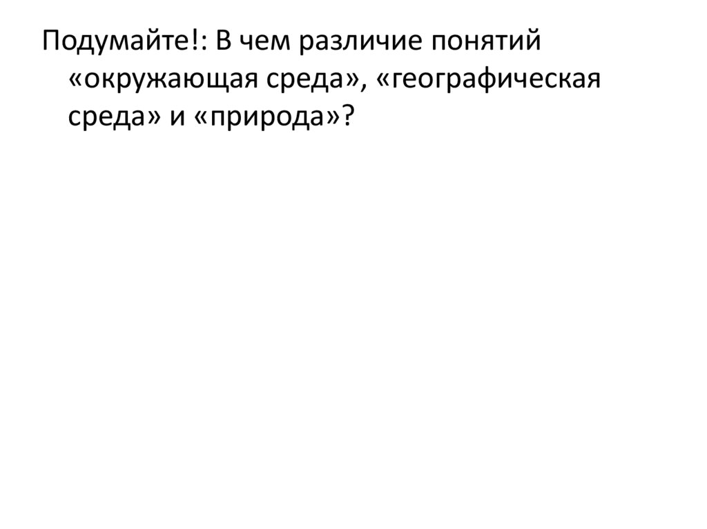 Подумайте!: В чем различие понятий«окружающая среда», «географическая