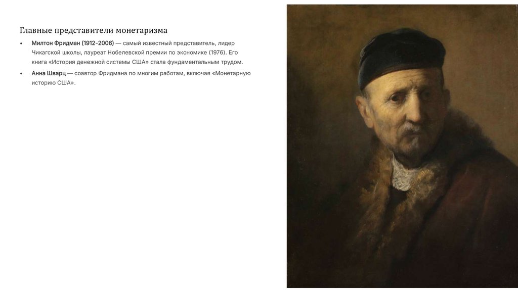 Главные представители монетаризмаМилтон Фридман (1912-2006) — самый известный представитель, лидер