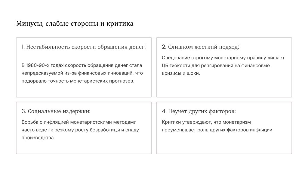 Минусы, слабые стороны и критика1. Нестабильность скорости обращения денег: