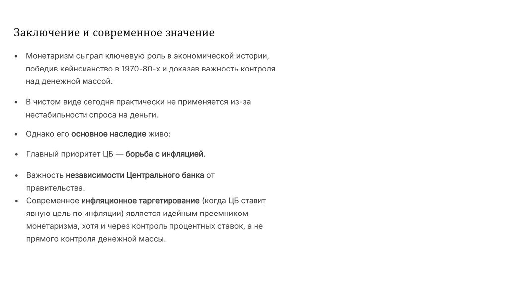 Заключение и современное значение• Монетаризм сыграл ключевую роль в экономической истории,